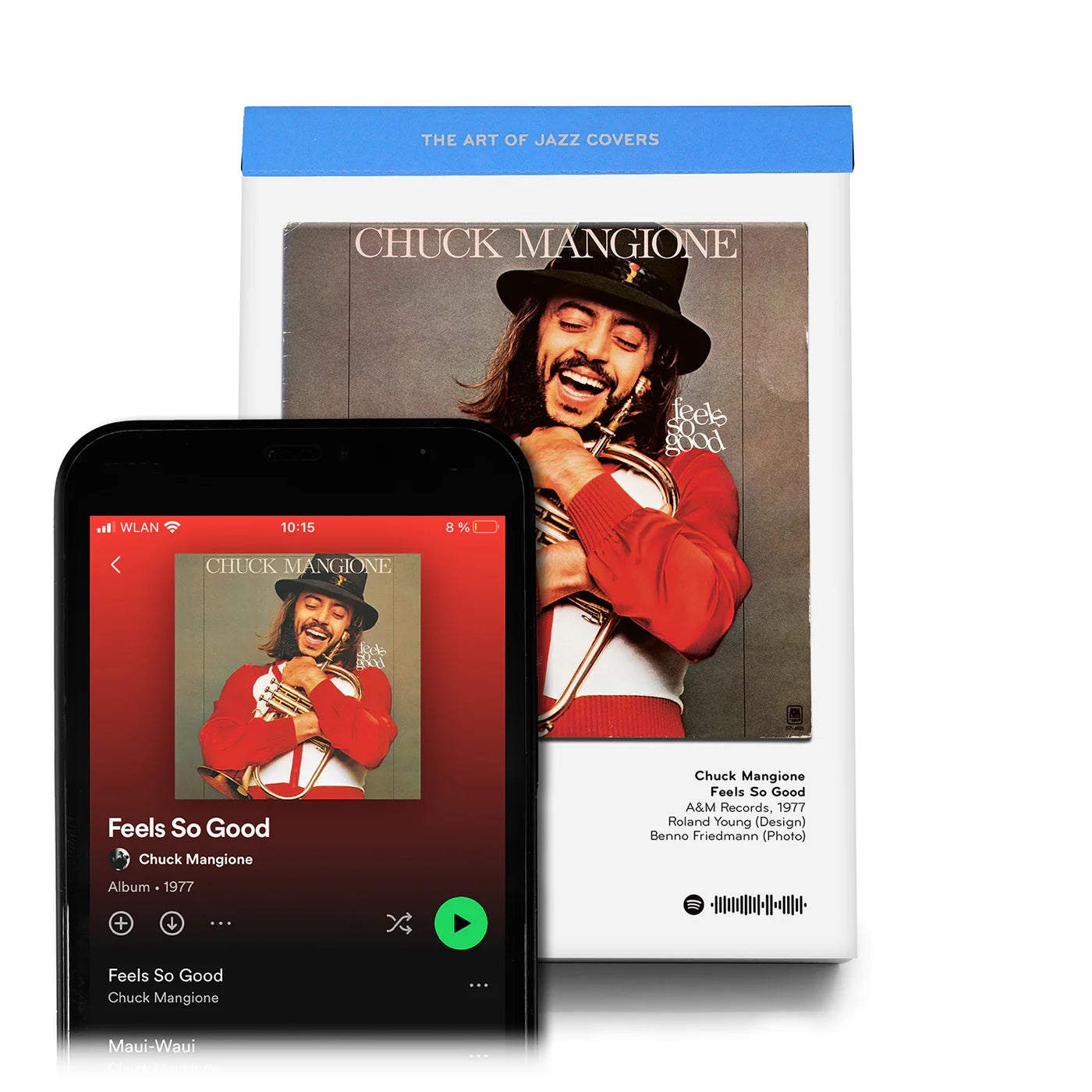 Alle Alben lassen sich über Spotify Codes direkt anhören – der perfekte Jazz Kalender für Schreibtisch oder Wand, Geschenkidee inklusive. 🎷✨