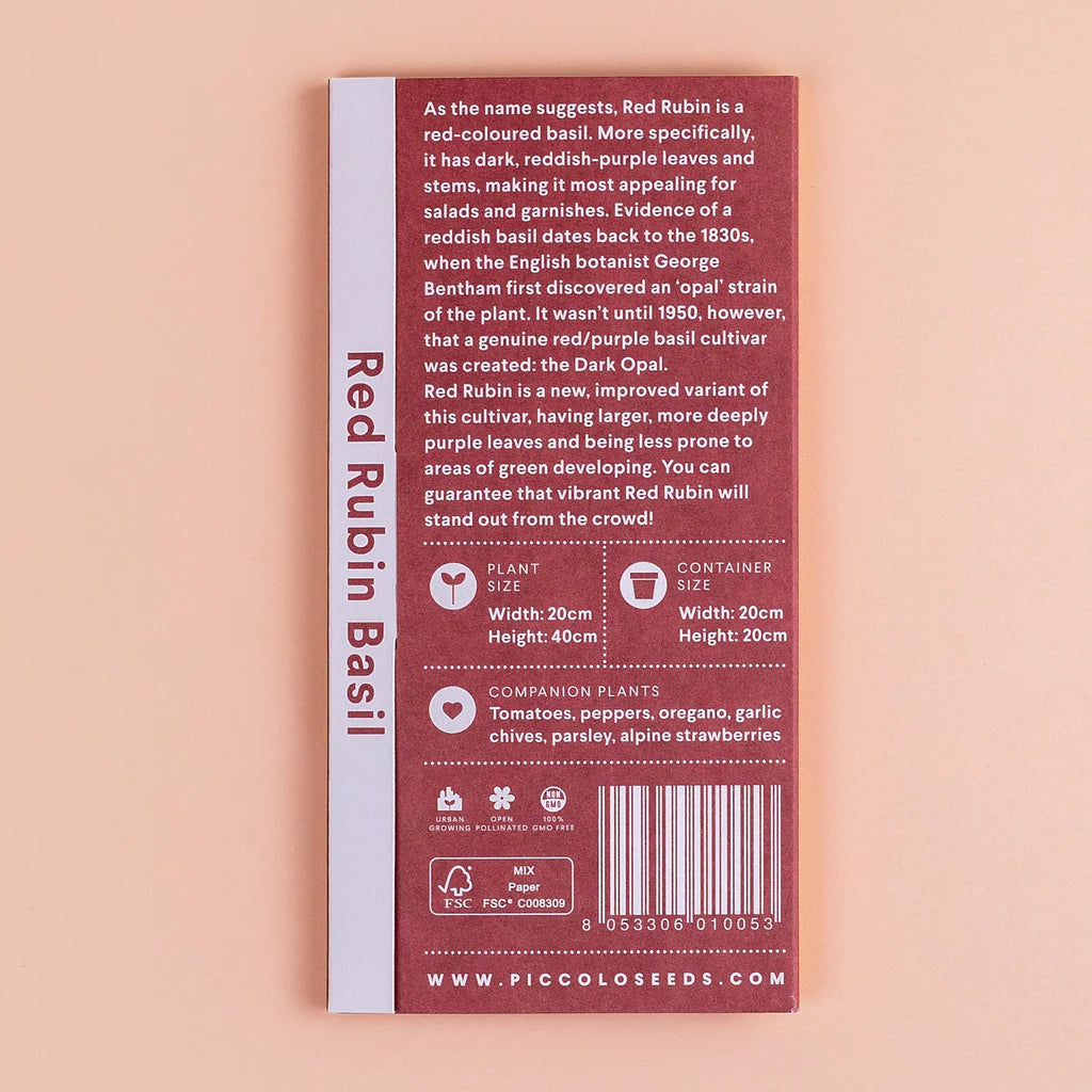 Im Vergleich zu klassischem grünem Basilikum überzeugt Red Rubin zudem mit einem kräftigeren, würzig-intensiven Geschmack. Die wüchsigen Pflanzen liefern zuverlässig über einen langen Zeitraum erntefrische Blätter und verbinden dekorativen Zierwert mit vollem mediterranen Aroma. Eine besondere Sorte für alle, die Basilikum einmal anders erleben möchten.