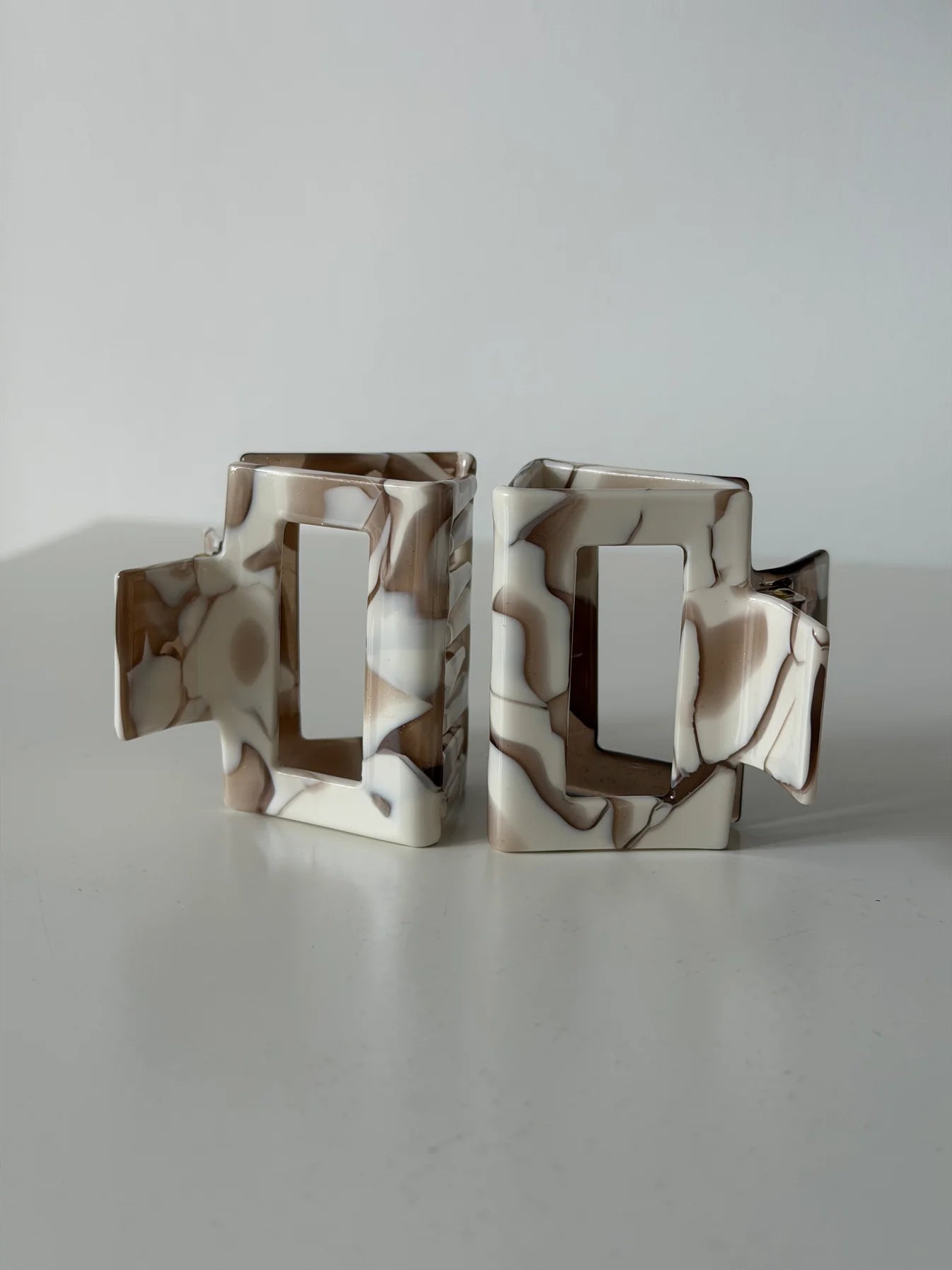 Da das Acetat handgegossen wird, sind alle Clips individuell und einzigartig. Es kann vorkommen, dass Farbe & Muster minimal von den Fotos abweichen.