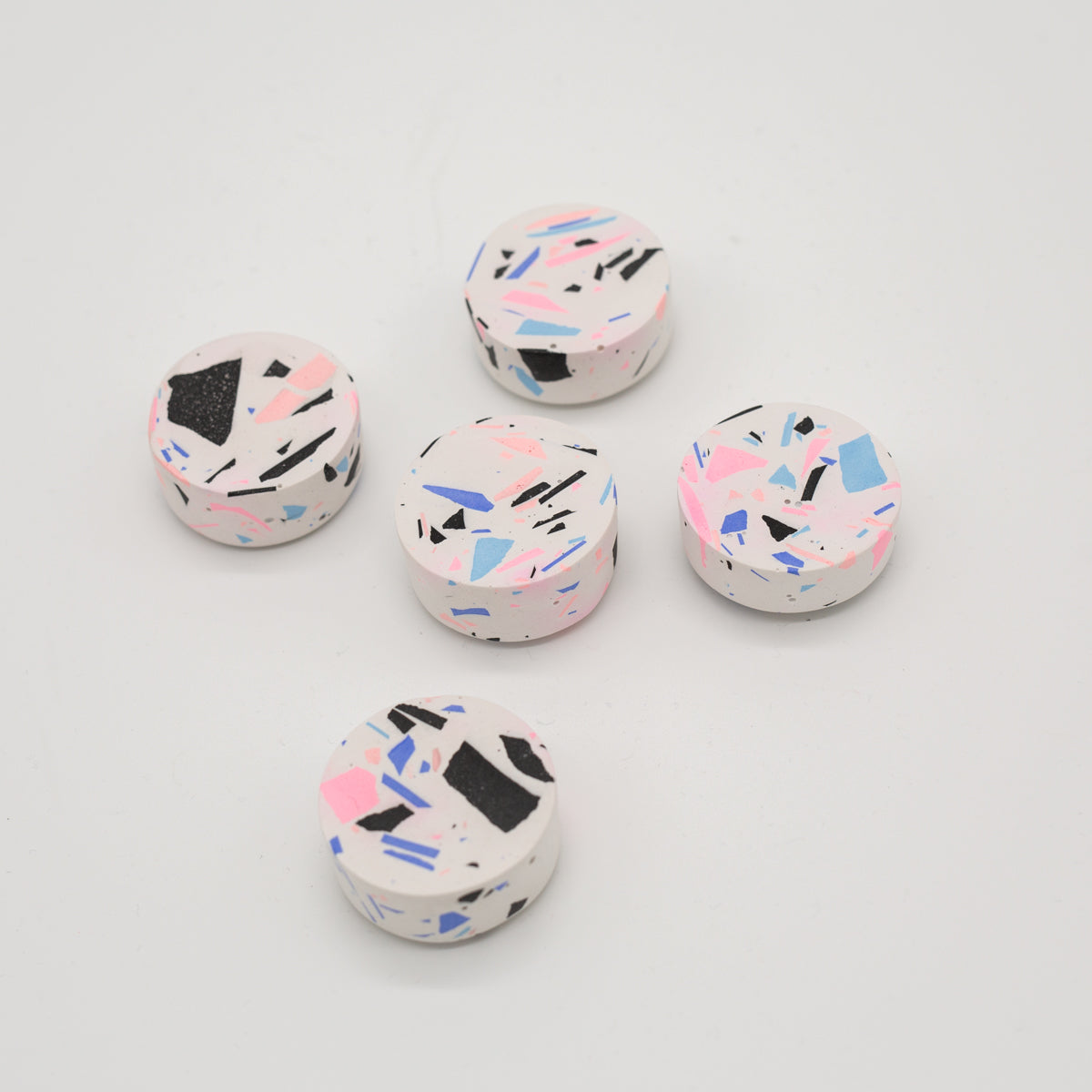 Jeder Artikel der Marke Uno Due Terrazzo wird von Hand gefertigt. Zwar gibt es Farbkollektionen und farbliche passende Artikel, dennoch muss man sagen, dass jedes Einzelteil ein Unikat ist. Kein Teil gleich dem anderen.