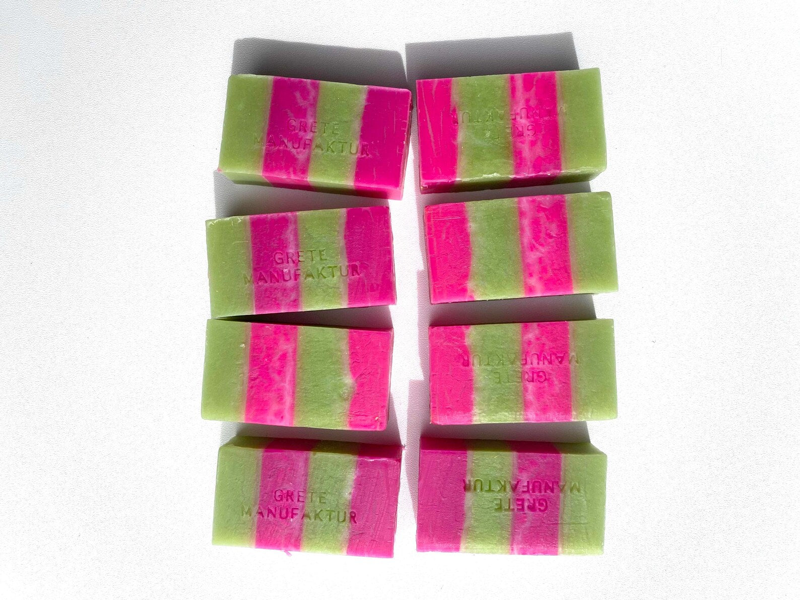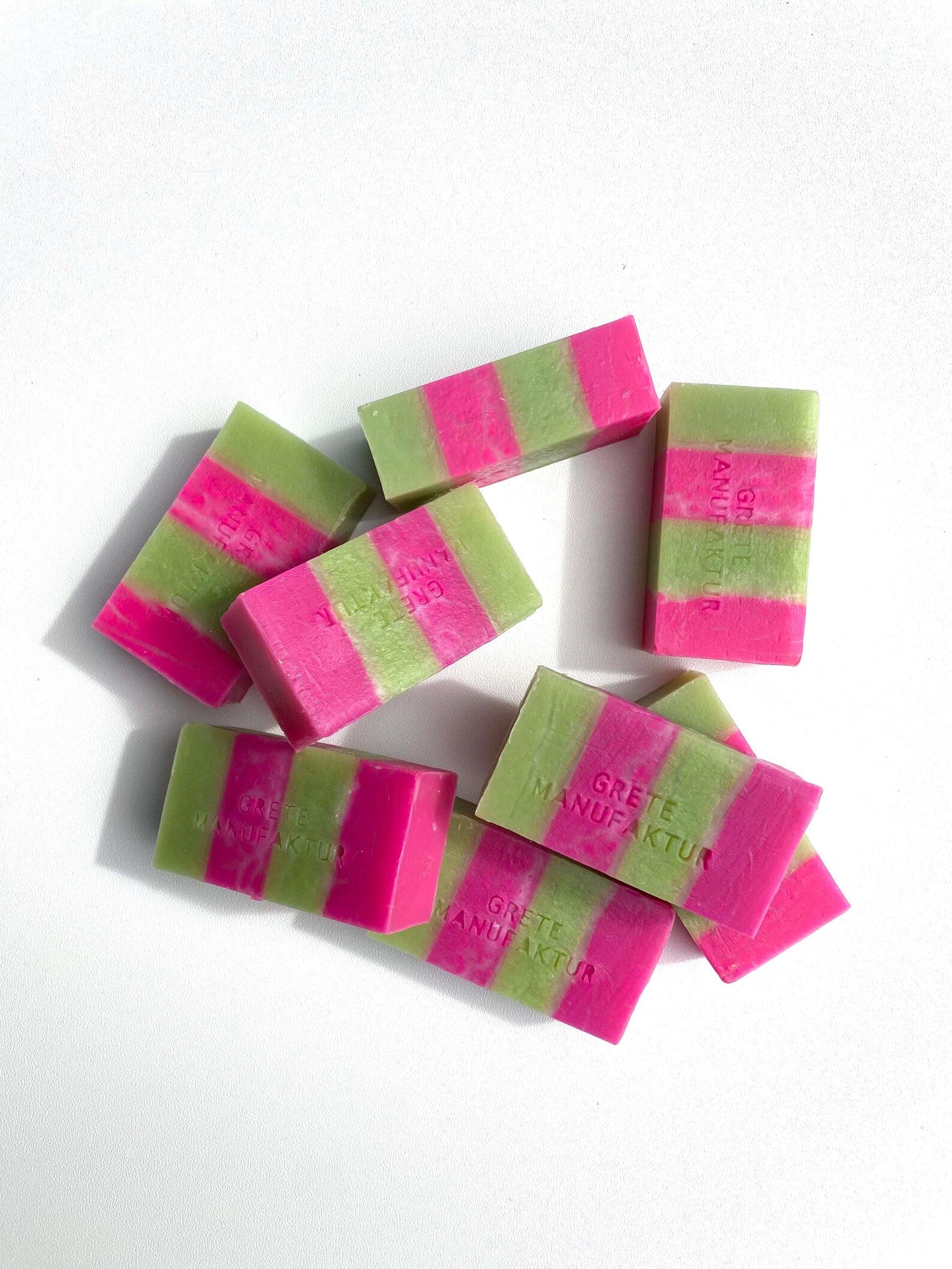 Alle GRETE-Seifen entstehen in reiner Handarbeit und werden nur in kleinen Chargen gesiedet und können daher in Aussehen und Farbe leicht variieren.